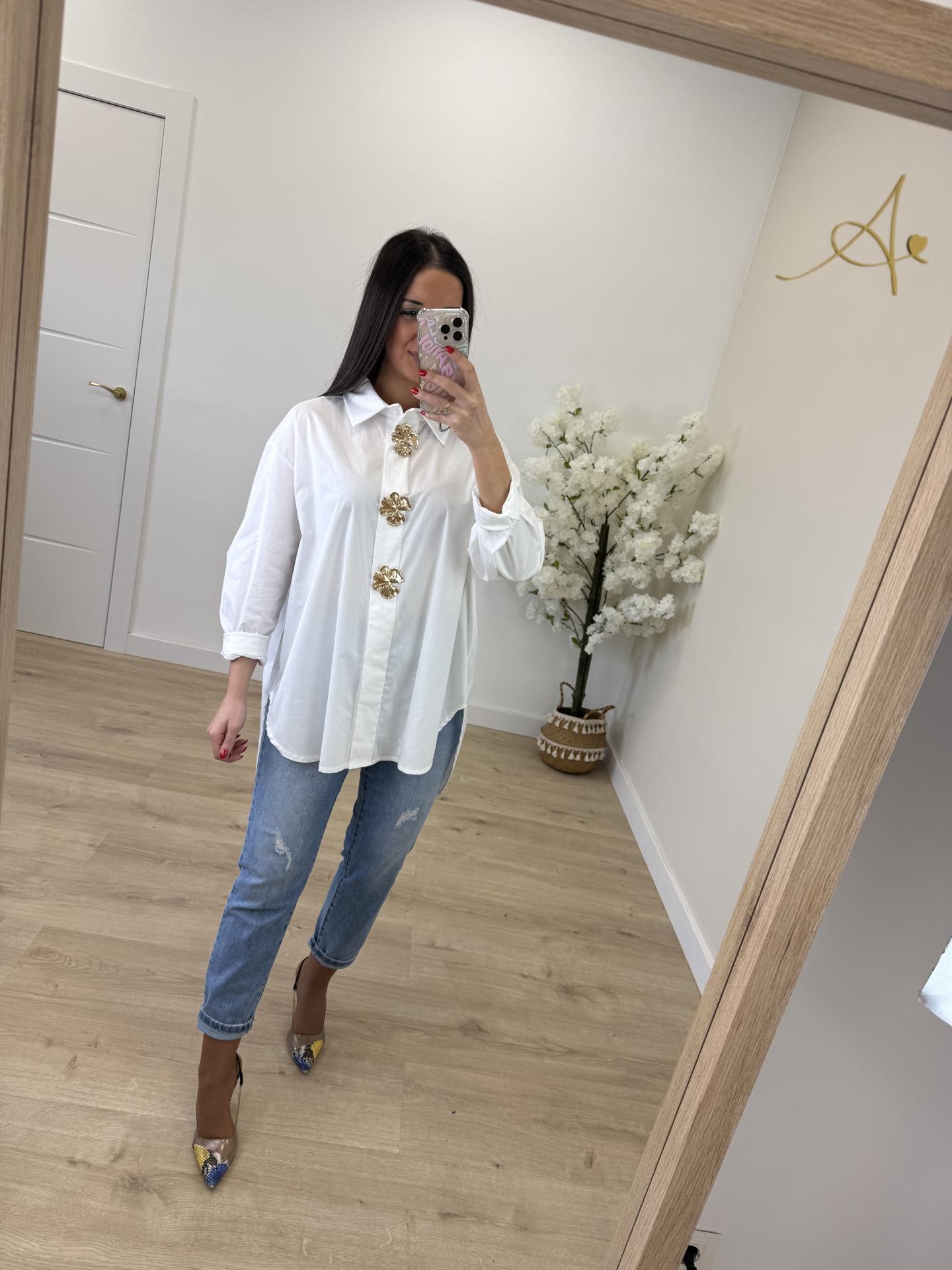 Es una monería, va abotonada y a parte lleva tres broches dorados que se pueden quitar. Talla única, perfecta desde XS hasta XXL
