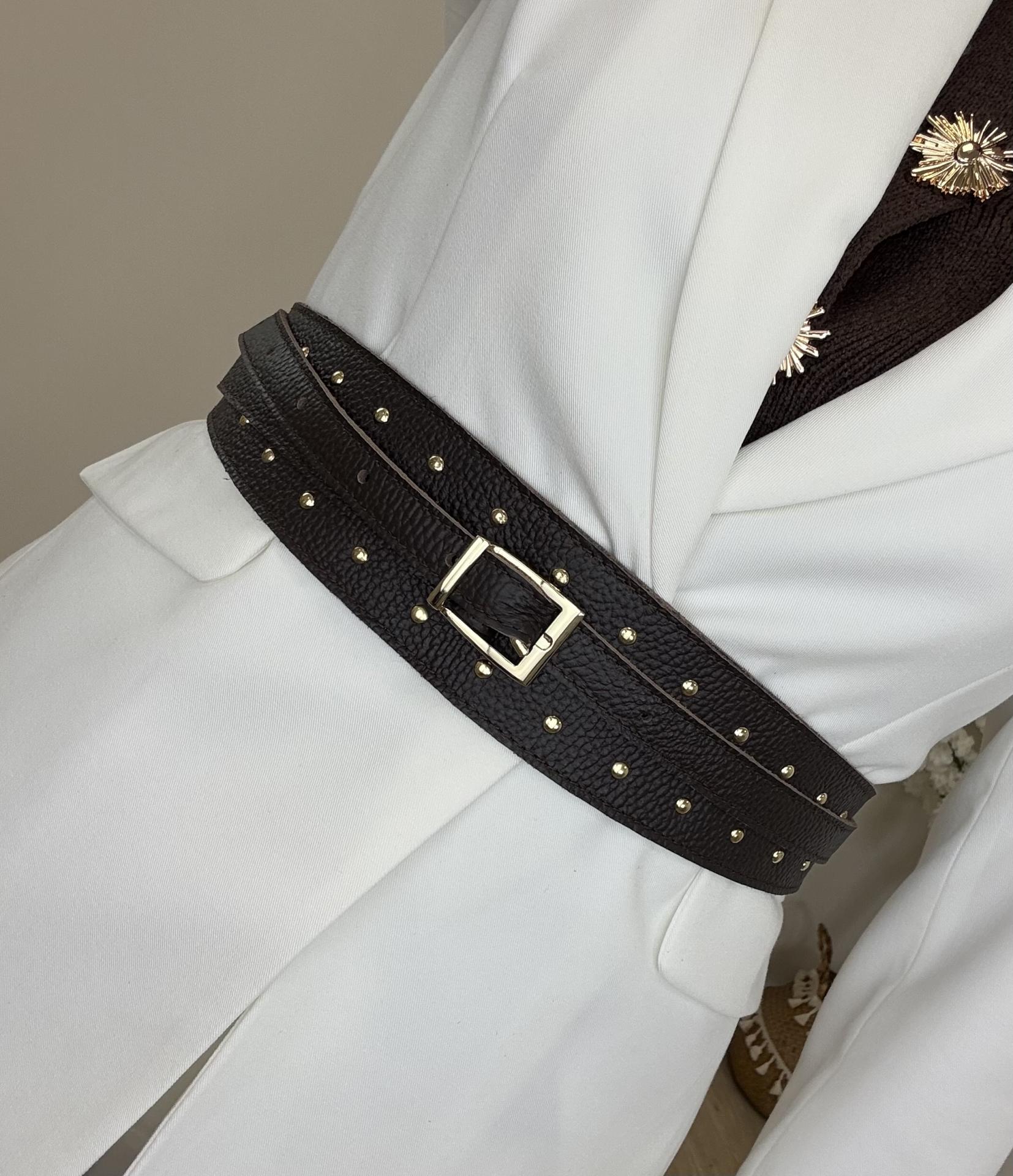 Cinturón Chocolate Tachitas Piel
