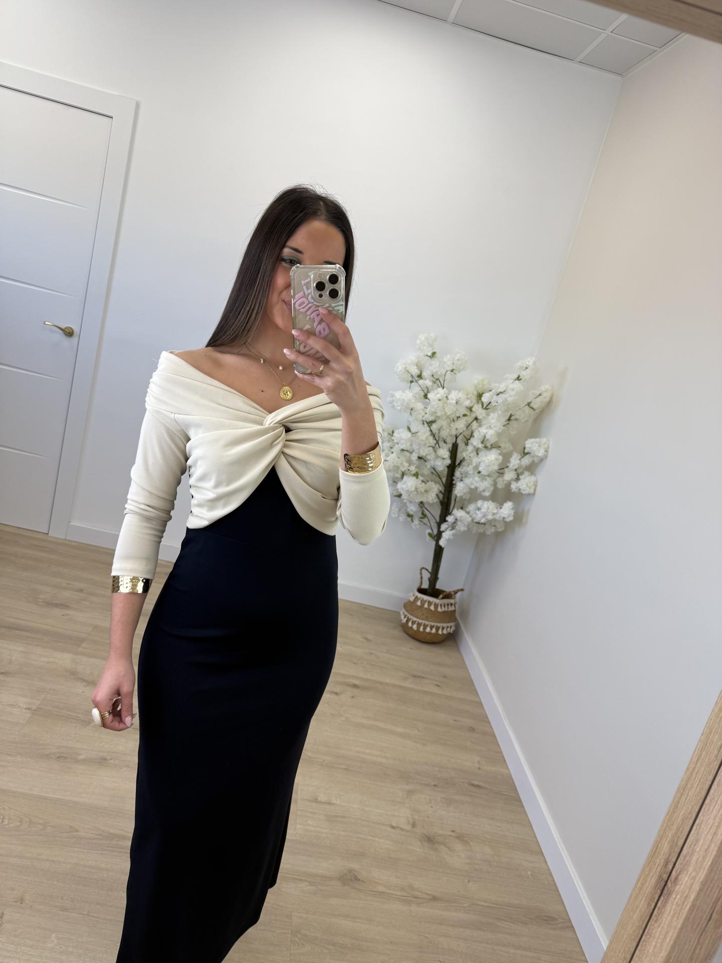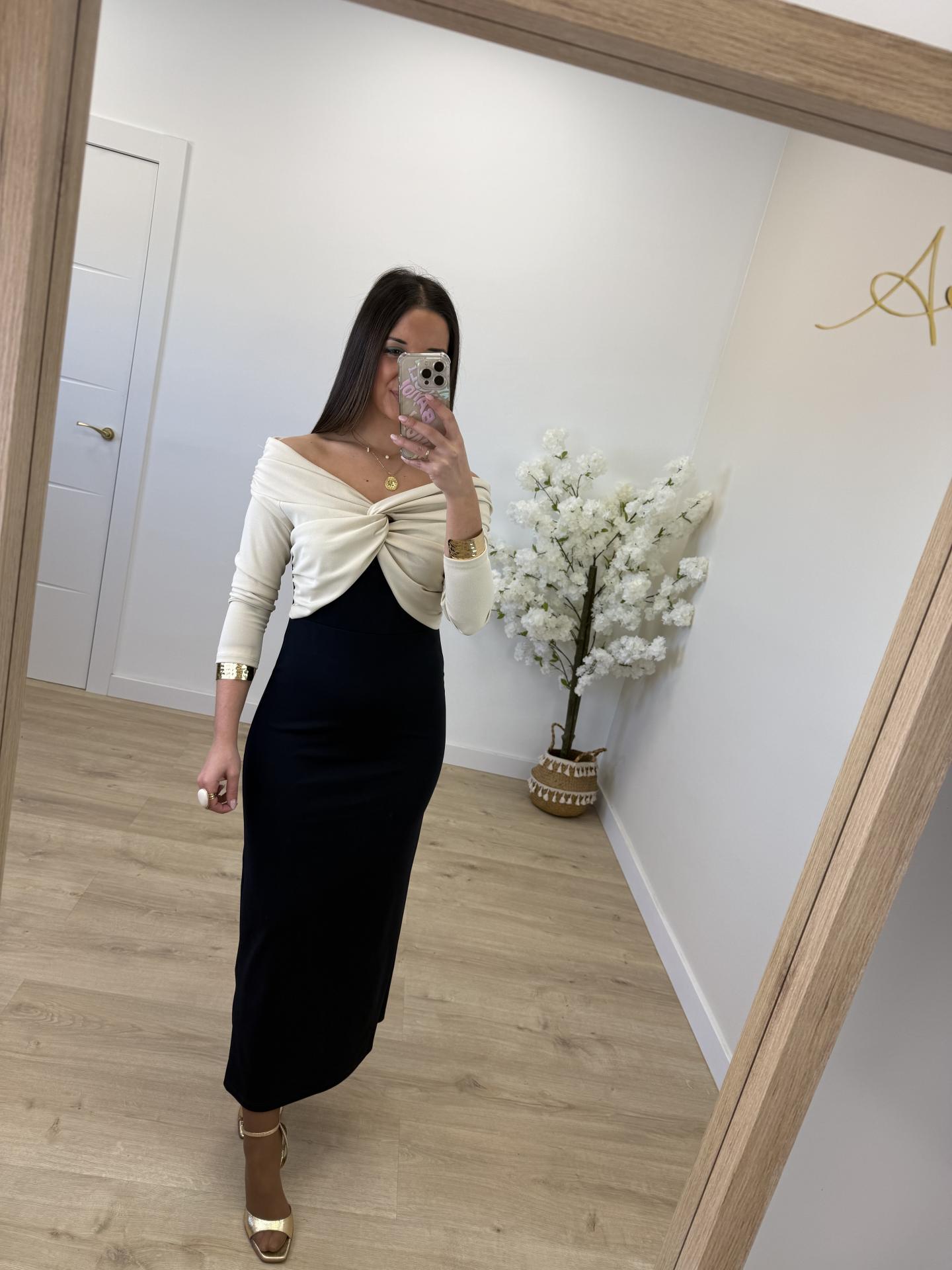 Vestido Bicolor Marino y Beige
