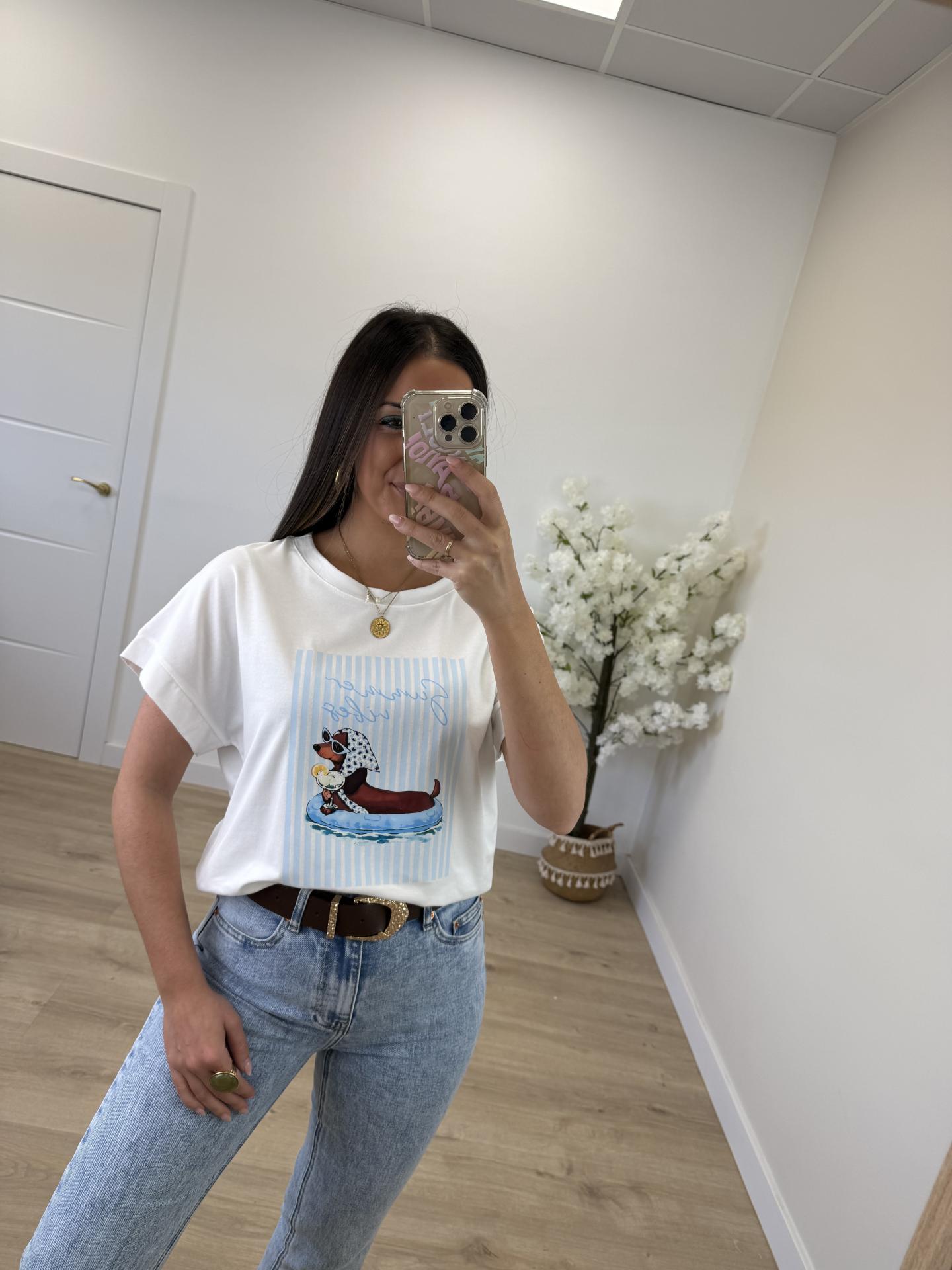 Camiseta Perro Salchicha Celeste